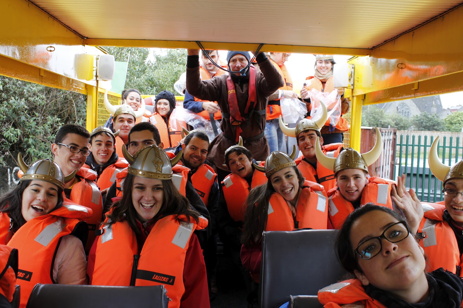De allí nos dirigimos a coger nuestra nave vikinga particular. Nos convertimos en vikingos durante dos horas y paseamos por las calles y el río de Dublín en un vehículo adaptado de la 2ª Guerra Mundial. Nos pusimos nuestros cascos vikingos y disfrutamos de los edificios más emblemáticos de la ciudad, gracias a nuestro simpático chófer.